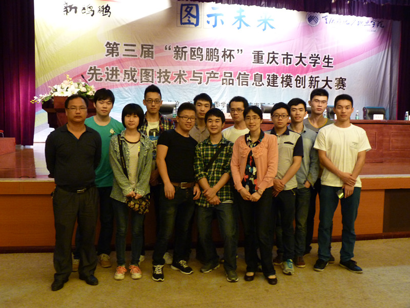 2014年5月24日,第三届“新欧鹏杯”重庆市大学生先进成图技术与产品信息建模创新大赛在重庆市房地产学院拉开帷幕。 本次大赛以图示未来为主题,吸引了来自yl6809永利官网,重庆理工大学,西南大学等高校近两百名制图精英参赛,在建筑类与机械类制图两个项目中展开激烈角逐。参赛选手和指导老师经过数月的辛勤备战,永利官网指导老师谭琼,谭伟老师带领永利官网yl6809永利官网学生参加了此次比赛,最终荣获2个团队二等奖,2项个人一等奖,6项个人二等奖和8项优秀奖。