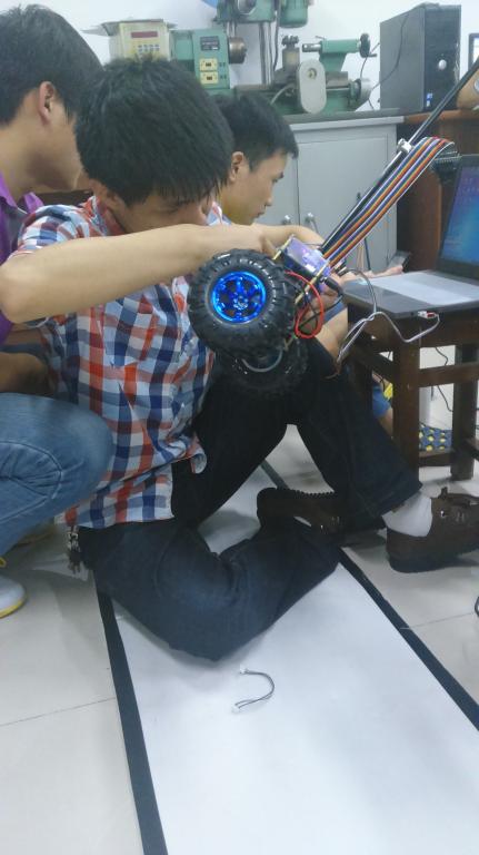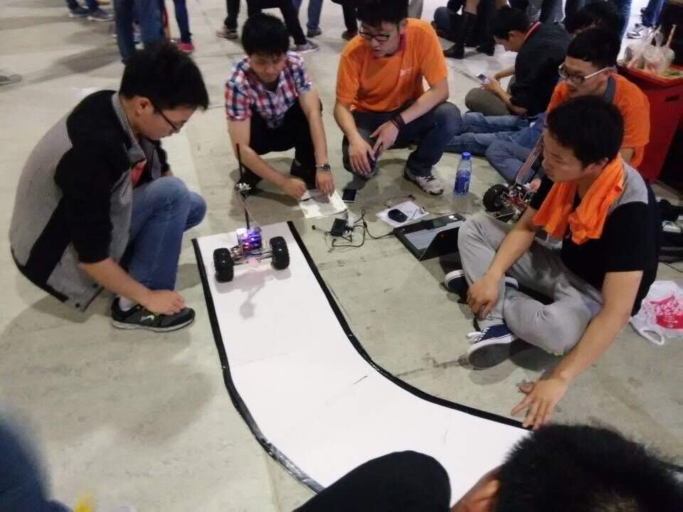 yl6809永利官网机器人兴趣小组中的13名同学在指导老师彭健、蒋昀赟和陈希瑞的指导下为比赛进行了艰苦的奋战。然而参加这次比赛的主要还是大一的同学,很多人都不是太明白单片机的原理以及c语言的构造和运行方式,想要在这次比赛中获得成绩就需要付出巨大的努力。在调小车的基本直立时,由于同学们基本上没有学过相关知识,不知道从何下手,指导老师蒋昀赟每天下班后陪着同学们研究如何解决问题,即使周末也在指导学生。