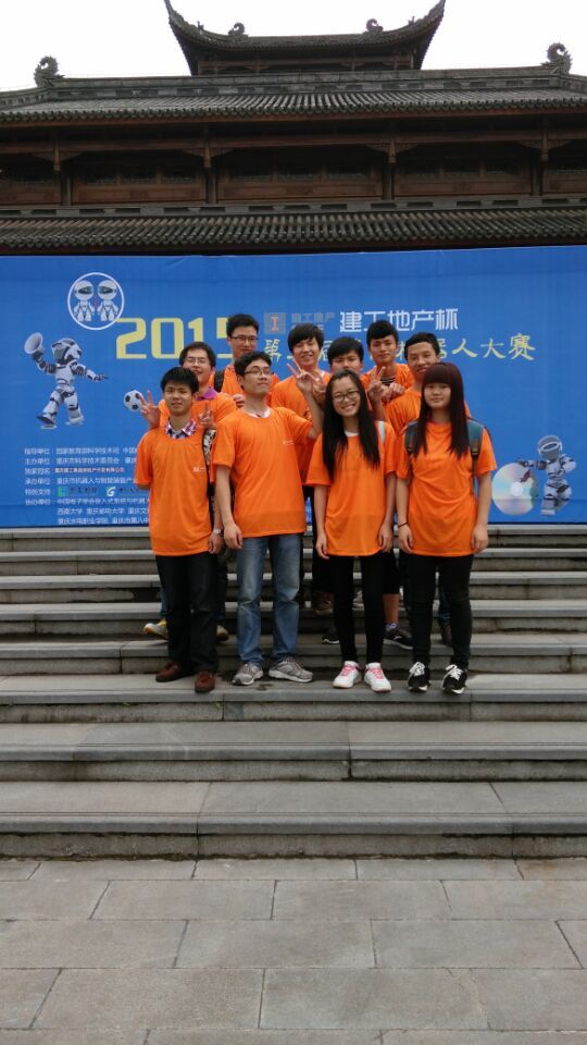 2015年5月16日至17日,重庆市“建工杯”第二届移动机器人大赛开幕。本次比赛由重庆市科学技术委员会和重庆市教育委员会主办,重庆市机器人与智能装备联盟和中国科学院重庆绿色智能技术研究院承办。全市各大小学,中学,大学齐聚园博园展示自己的成果。大学组比赛分为竞速赛和创意赛。此次yl6809永利官网共派出了13名队员参赛,其中竞速赛4组共12人;创意赛1组共1人。经过两天的奋战,取得了创意赛三等奖的成绩。