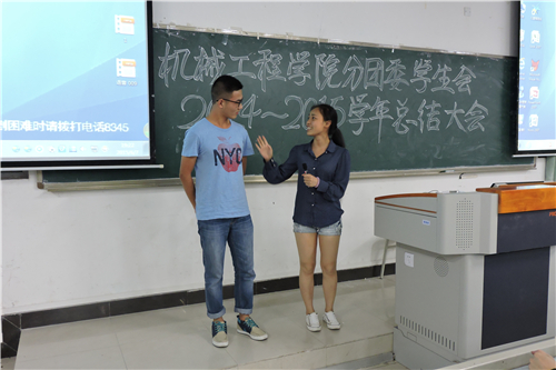 本次总结大会旨在对20142015年度学院分团委学生会工作进行汇报,对“优秀干事”、“优秀部长”进行表彰。首先各部长重点回顾了部门这一年来开展的各项工作、活动,言语之间透露出了对学生会的热爱和对干事们辛苦工作的感谢,同时他们也对自身工作的不足进行了分析与思考,这为以后的工作奠定了基础。通过他们的反思也表现出学生会的发展目标:在本届工作的基础上,团结拼搏,迎难而上,进一步提高工作时效性和创新性。接下来各部门还带来了一系列的精彩表演,在为大会带来了欢乐气氛的同时,展现了学生会各部门间的默契合作。随后大会对“优秀部长”、“优秀干事”进行了表彰并授予奖状,以表达学院对大家工作的肯定。最后,邢老师对本次大会作总结,她肯定了学生会在本年度的工作成果及良好的部门氛围,并激励我们要不断进取,共同将学生会建设得更加美好。